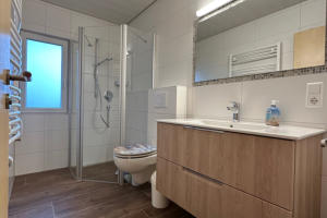 neues geräumiges Bad mit WC und ebenerdiger Dusche,